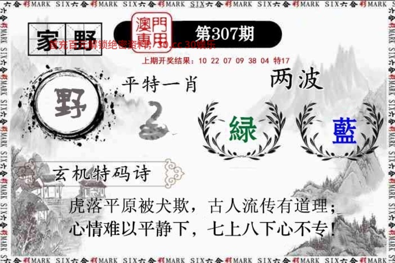| 310期:家野中特【家禽家禽】开:虎16错 |